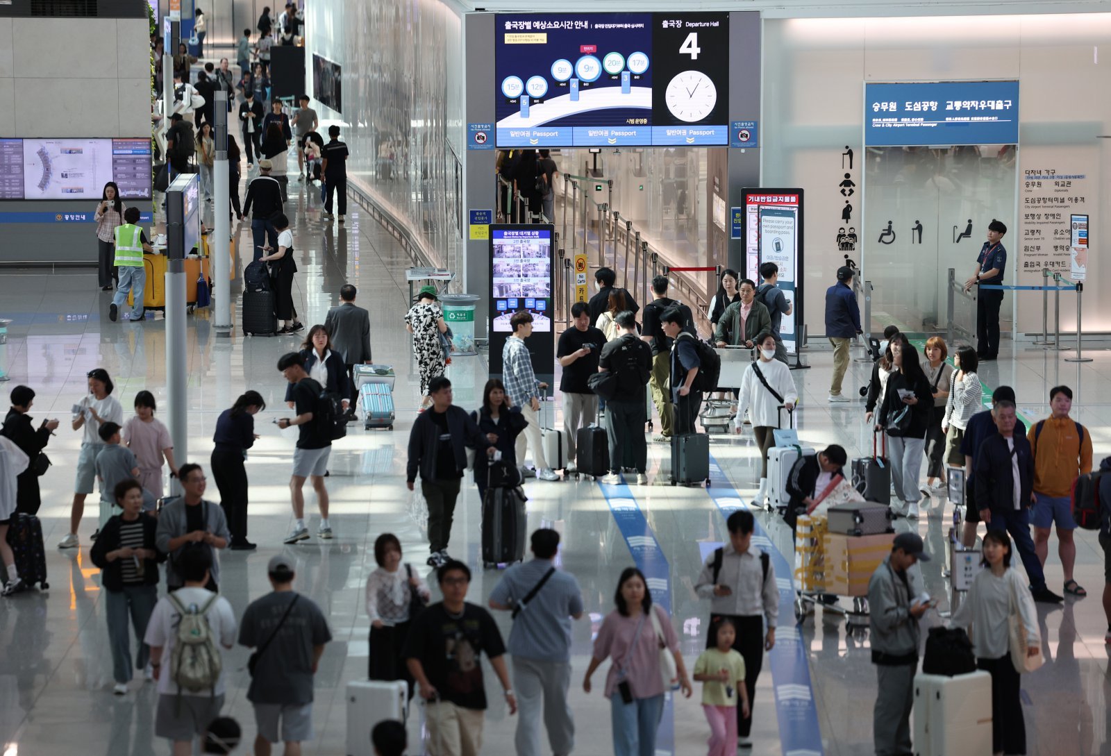 추석 황금연휴를 앞둔 1일 인천국제공항 1터미널이 여행객들로 북적이고 있다. 인천국제공항공사에 따르면 올해 추석 황금연휴 기간(2일~12일)에 인천공항을 오가는 여객은 245만3000명으로 예상했다. 2025.10.01. 인천공항=뉴시스