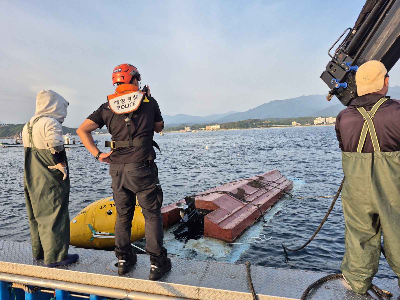 양양 후진항 선박 전복 사고 투입된 속초해경 경찰관.(속초해경 제공)