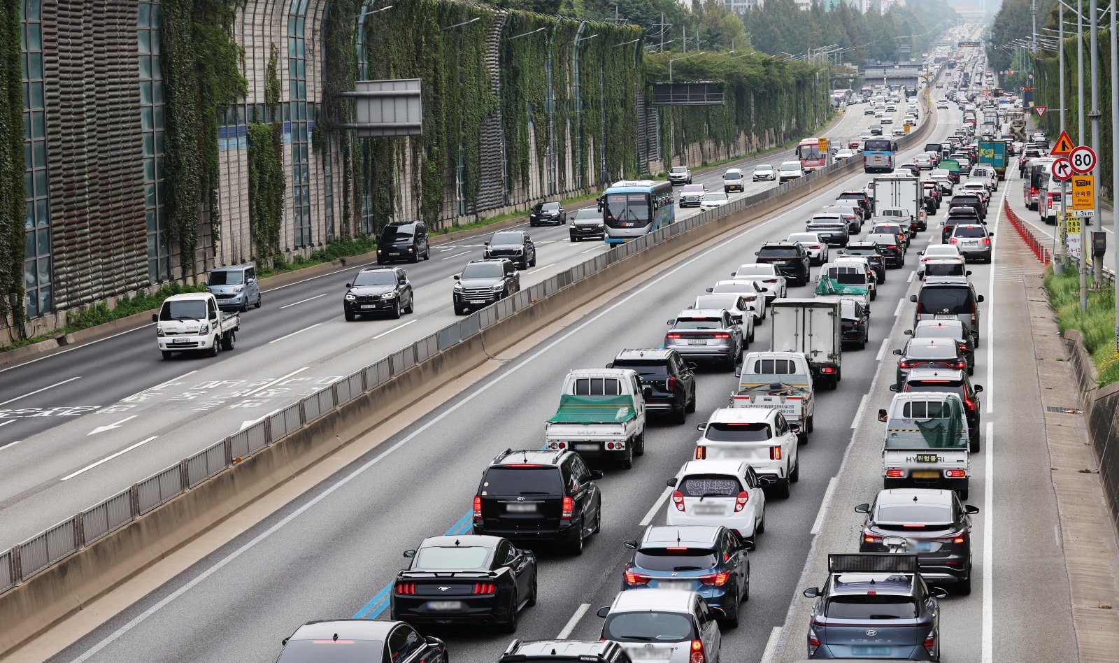 추석 연휴를 하루 앞둔 2일 오후 서울 서초구 경부고속도로 잠원IC 부산방향이 귀성길을 떠나는 차량으로 정체되고 있다. 2025.10.2/뉴스1