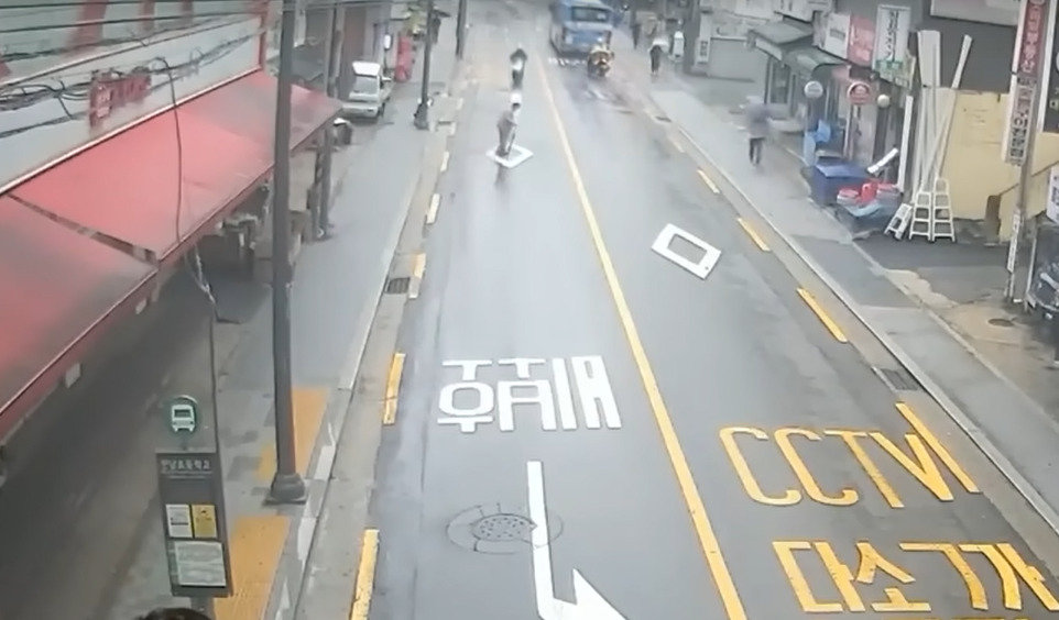 공개된 폐쇄회로(CC)TV에는 횡단보도가 아닌 곳에서 지팡이를 짚고 천천히 건너는 노인의 모습이 담겼다.