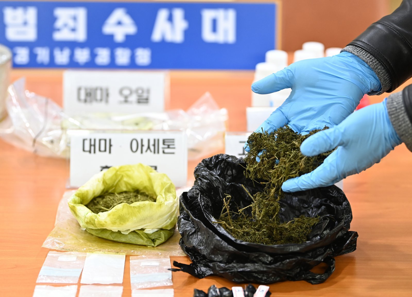 경기남부경찰청 마약범죄수사대는 4일 마약류관리법위반 혐의로 30대 러시아인 A씨 등 2명을 구속하고 1명을 불구속 입건했다. 이들은 경기 안산시 한 다세대주택에 월세방을 얻고, 그 안에서 대마와 화학약품을 이용해 ‘해시시’라는 마약을 제조한 뒤 이른바 ‘던지기 수법’을 통해 유통한 것으로 확인됐다. 또한 마약을 만들면서 신종 마약인 ‘메페드론’을 투약하기도 했다. 사진은 이날 공개된 마약 압수품. 2024.04.04. [수원=뉴시스]
