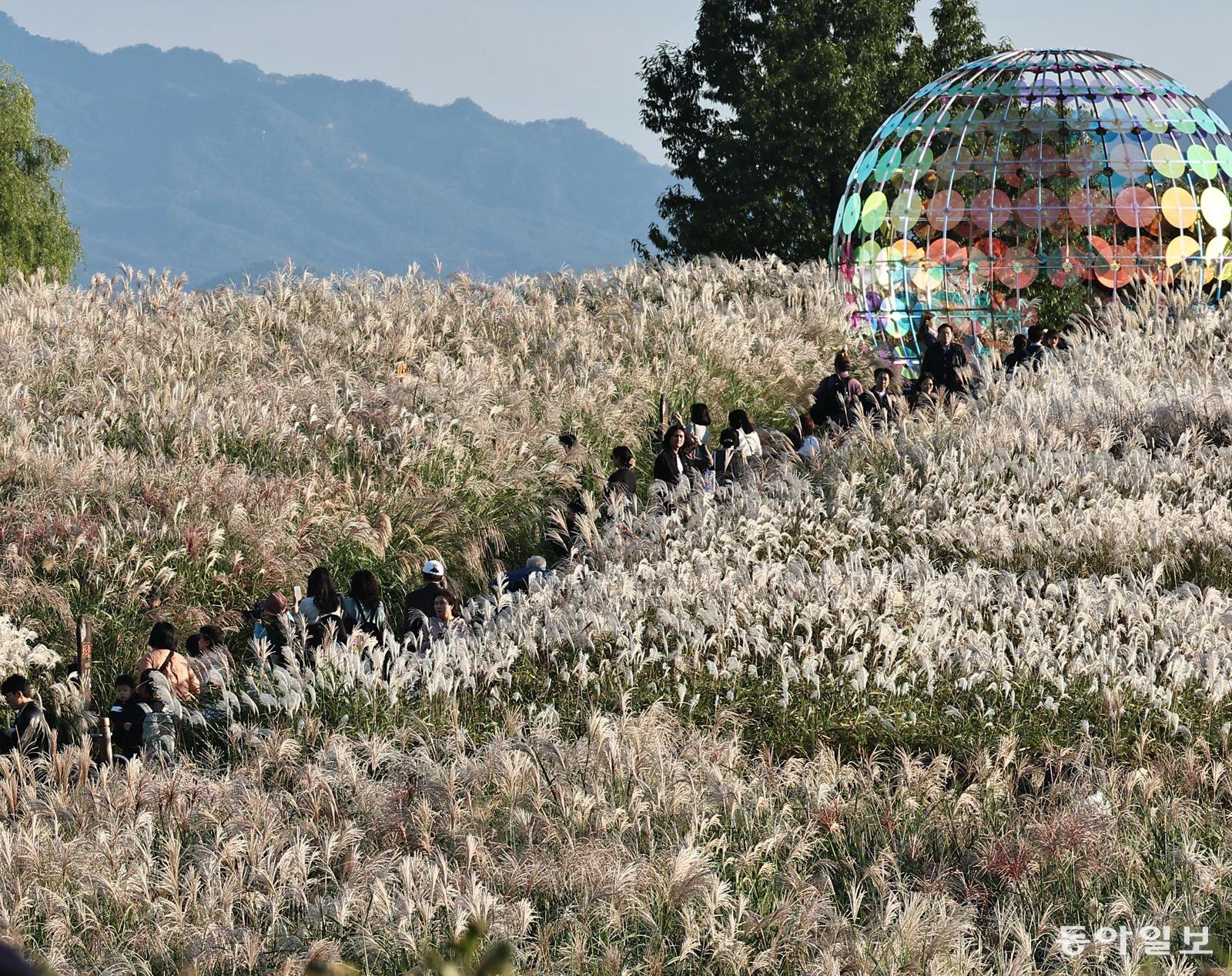 23일 서울억새축제가 열리는 마포구 월드컵공원 내 하늘공원에서 시민과 관광객이 억새밭을 거닐고 있다. 이 축제는 24일까지 열리며, 행사장엔 다양한 조형물과 미디어아트, 포토존이 설치된다.