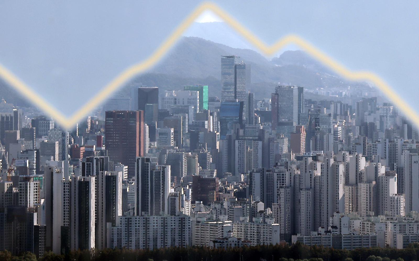 (서울=뉴스1) KB부동산 조사 기준으로 이달 서울 아파트 매매가격이 10·15 부동산 대책 발표 이전까지 기준으로 올해 들어 최고 상승률을 기록한 것으로 나타났다. 사진은 27일 서울 남산에서 바라본 아파트 단지 모습. 2025.10.27