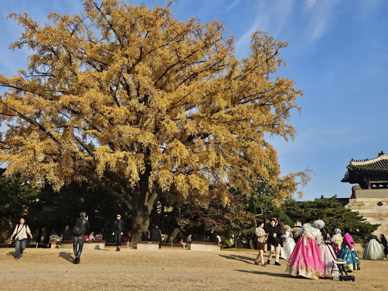 가을이 되면서 경복궁 건춘문 옆 은행나무 앞은 시민들과 외국인 관광객들이 가장 많이 찾는 곳이 됐다. 이 은행나무는 경복궁 내 다른 은행나무보다도 크고, 나뭇가지가 흐드러진 모습이어서 최근 사회관계망서비스(SNS)에 자주 등장한다.