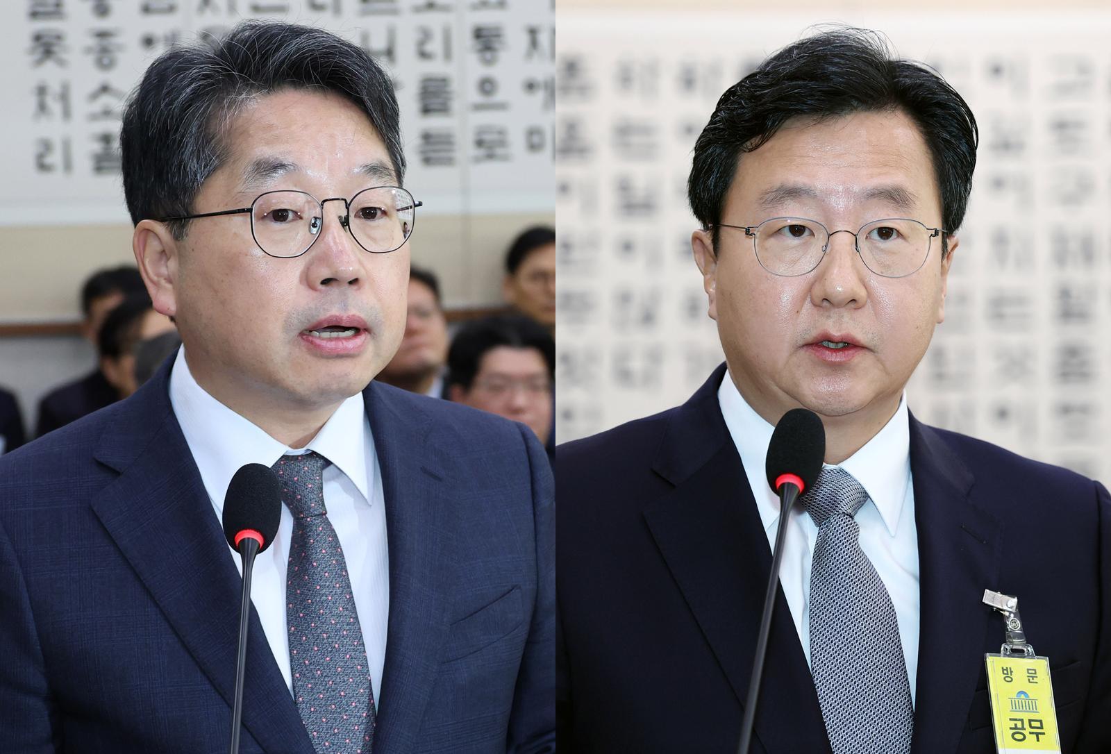 노만석 검찰총장 권한대행(왼쪽), 정진우 서울중앙지검장. 뉴시스