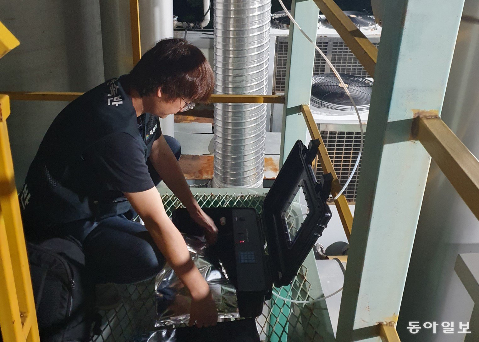 전북 익산시가 운영하는 ‘24시간 악취상황실’ 근무자가 민원 현장을 찾아 장비를 이용해 악취 발생 여부를 측정하고 있다. 익산시 제공