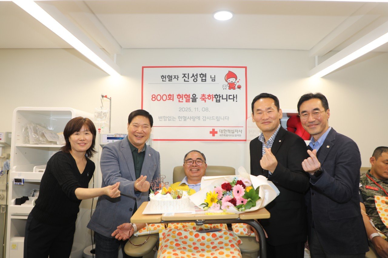 대한적십자사 제주도혈액원은 지난 8일 제주시 헌혈의집 신제주센터에서 진성협 씨(62)가 800번째 헌혈을 달성했다고 10일 밝혔다.