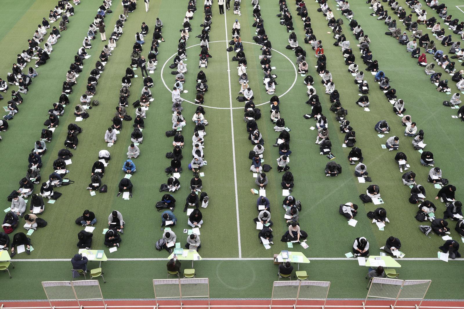 2026학년도 대학수학능력시험을 하루 앞둔 12일 오후 대구 중구 경대사대부고 운동장에서 열린 수능 예비소집에 참석한 졸업생과 재수생 등 수험생들이 유의사항을 듣고 있다. 2025.11.12 (대구=뉴스1)