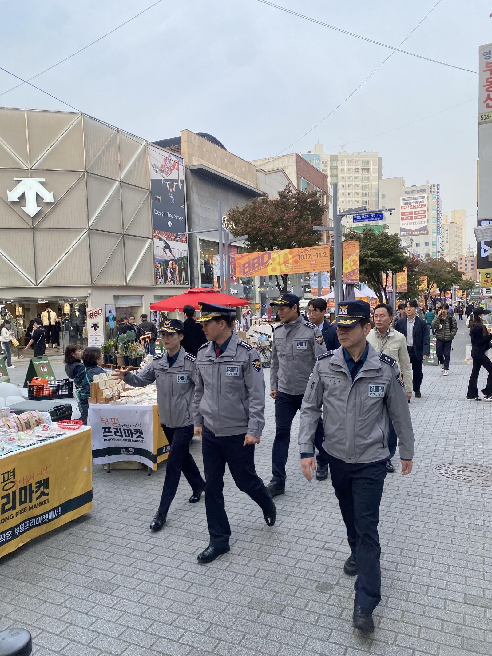 지난달 30일 인천 부평구 ‘문화의 거리’ 일대에서 한창훈 인천경찰청장이 야간 치안 상황을 점검하고 있다. 인천경찰청 제공