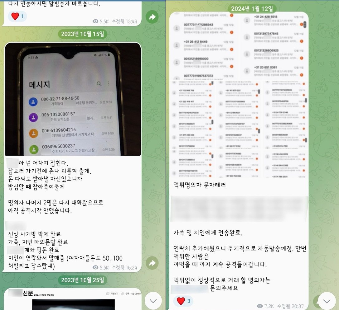이후 계좌 명의자가 불법 자금을 인출하는 등 행위를 하면 보복을 전담하는 출동팀을 시켜 명의자의 집이나 직장으로 찾아가 폭행하는 등 보복했다. 이들은 보복 장면을 찍어 텔레그램에 올리는 등 공포심을 유발했다.