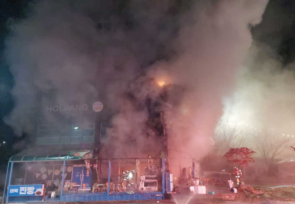 지난 15일 오후 10시 15분께 태백시 황지동 태백산국립공원관리사무소와 서학주유소 사이에 위치한 용진상가에서 화재가 발생했다.