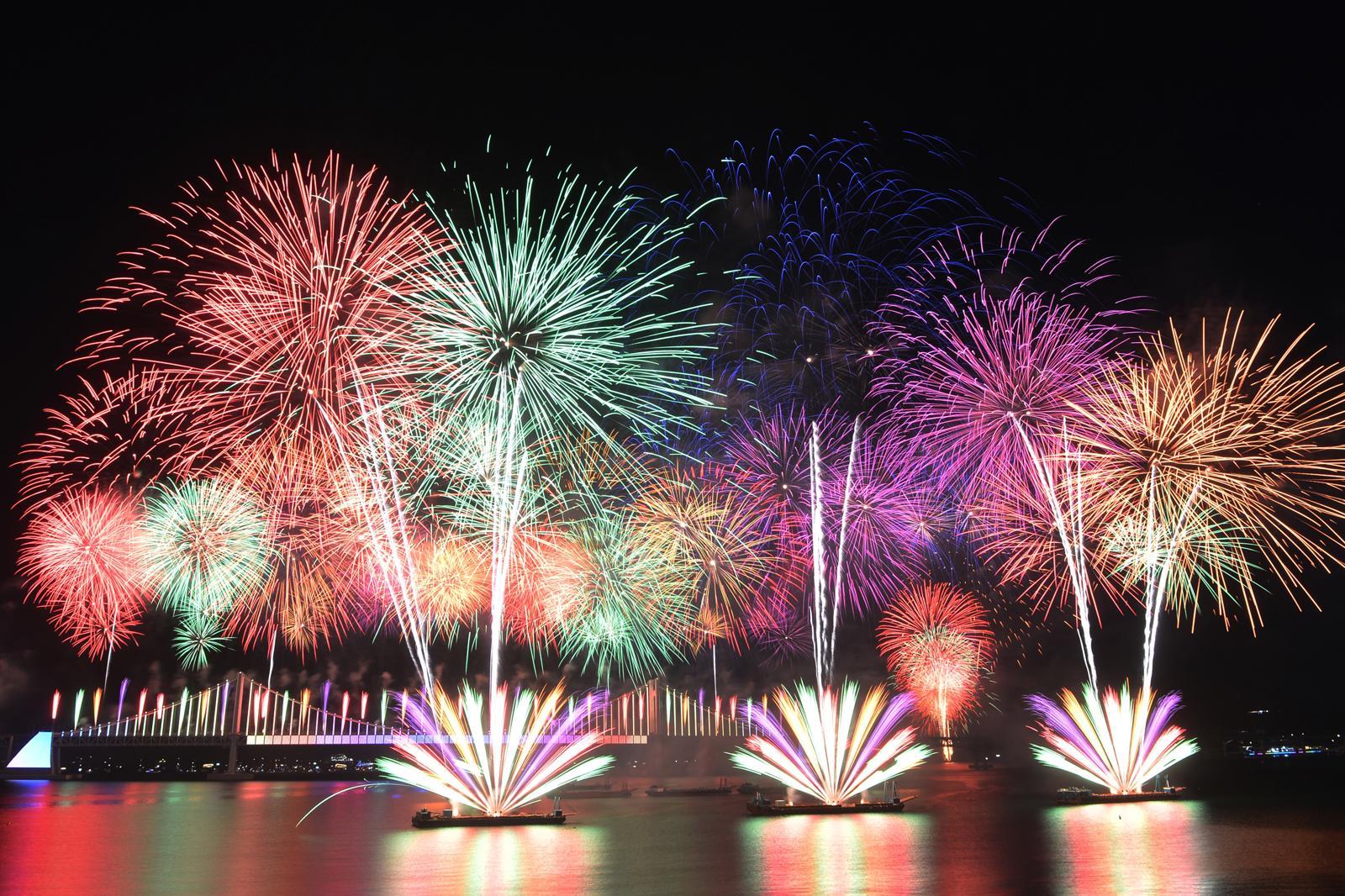15일 부산 수영구 광안리해수욕장 일대에서 광안대교를 배경으로 화려한 불꽃쇼가 펼쳐지고 있다. 올해 20주년을 맞은 부산불꽃축제를 즐기기 위해 전국 각지에서 117만 명(주최 측 추산)이 몰렸다.
