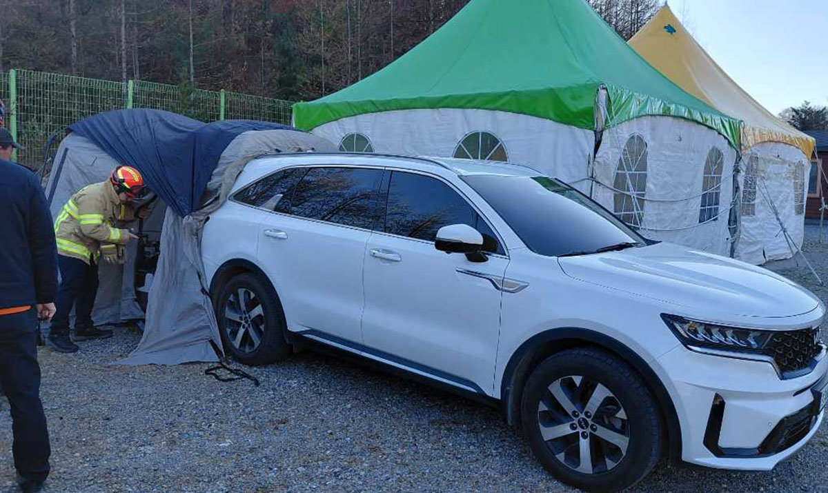 발견 당시 차량 뒤쪽에 연결된 텐트 안에서는 유류 난방기가 켜져 있었던 것으로 파악됐다. 그러나 창문이 닫혀 있는 등 텐트는 밀폐된 상태로 연결돼 있었다.