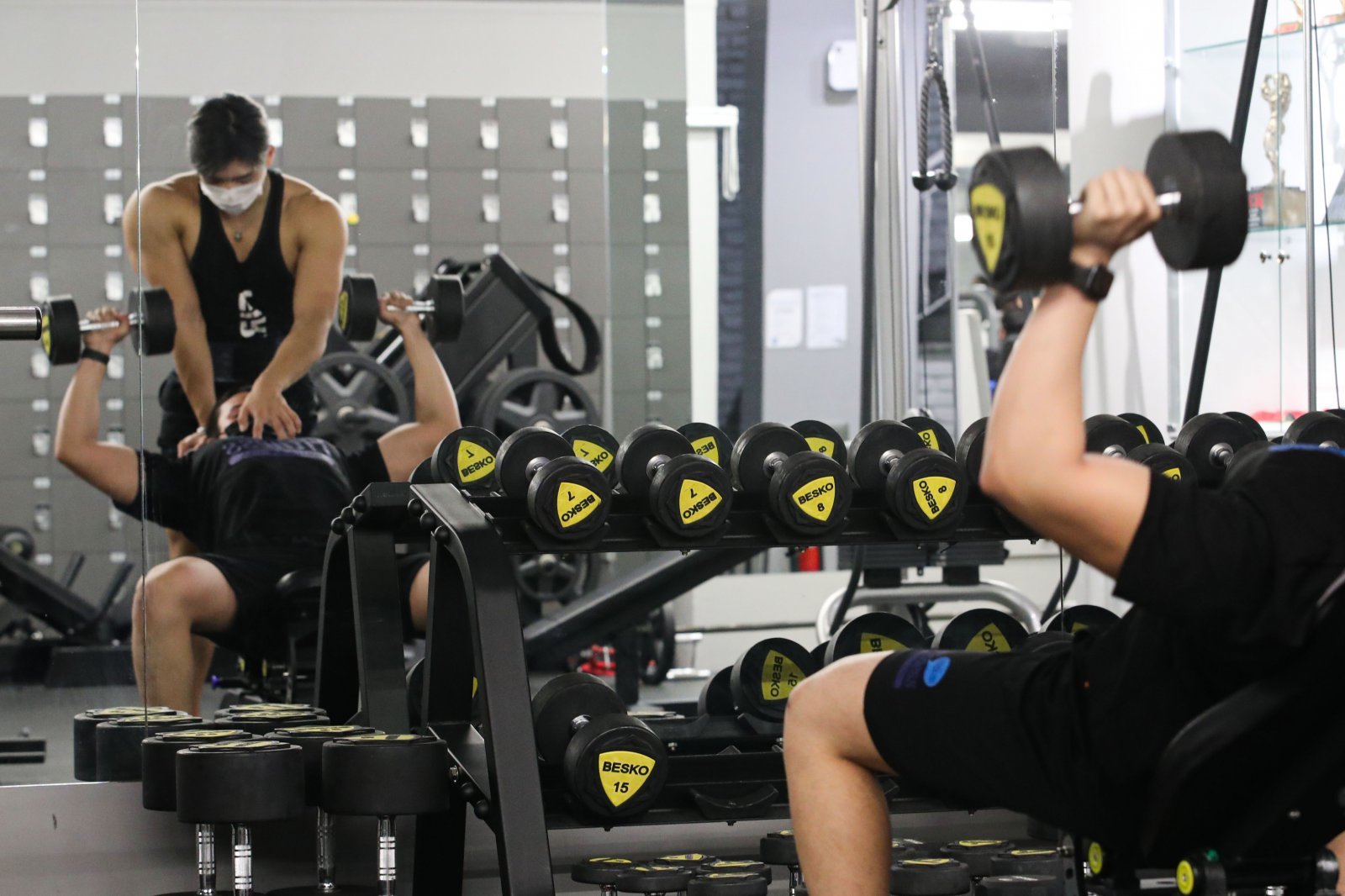 ‘단계적 일상회복(위드 코로나)’ 시행 첫 날인 1일 오후 서울 강남구 디스이즈피트니스 청담점에서 트레이너가 운동하고 있다. 위드 코로나 시행으로 유흥시설을 제외한 식당과 카페 등 다중이용시설 영업시간 제한이 풀린다. 노래방과 헬스장 등 시설에는 백신 접종완료를 증명하는 ‘방역패스’가 도입된다. 사적 모임은 수도권은 10명, 비수도권은 12명까지 가능하다. 2021.11.01. [서울=뉴시스]