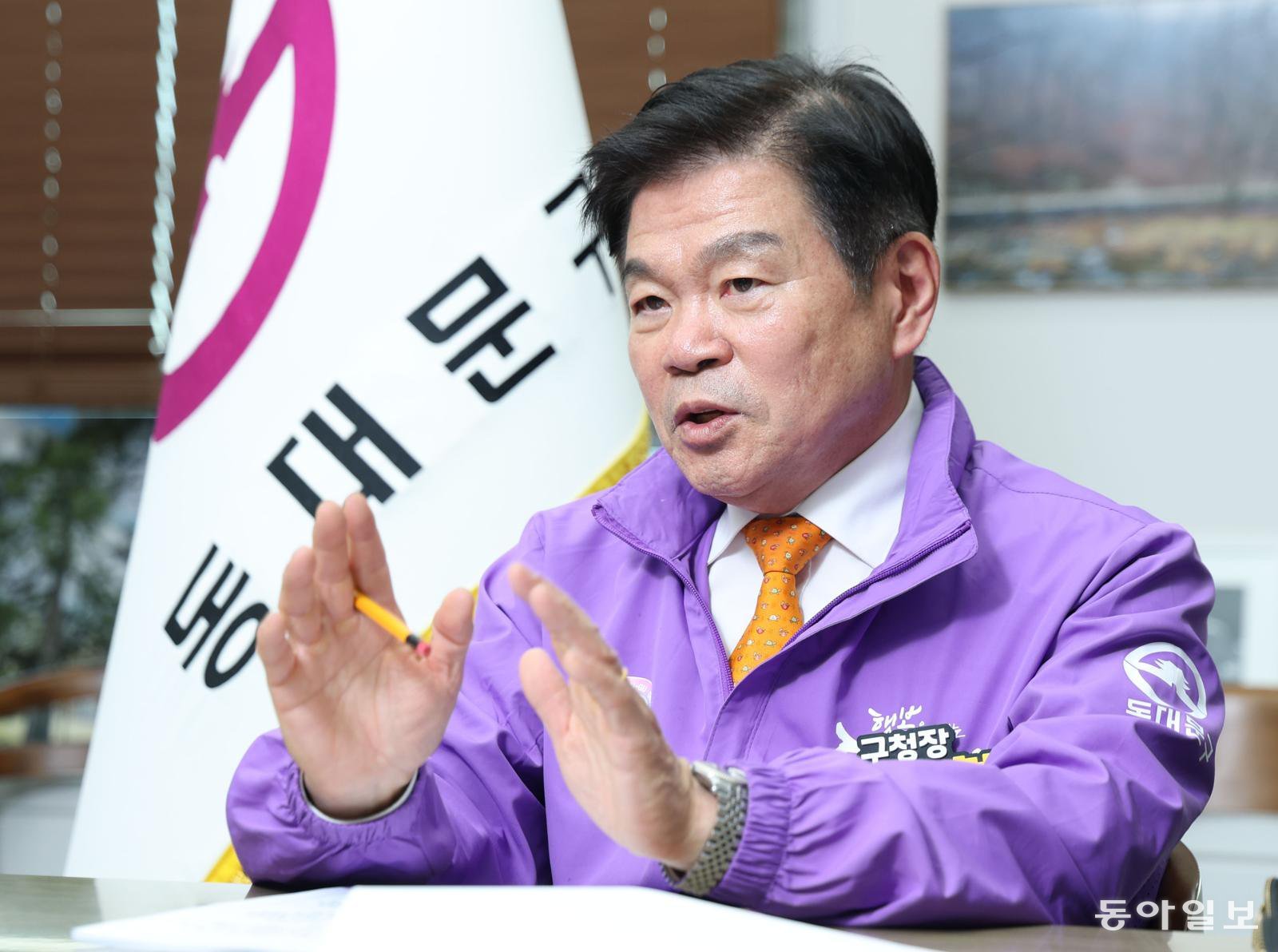 13일 이필형 서울 동대문구청장이 동대문구 용두동 구청장 집무실에서 동아일보의 질문에 답하고 있다.