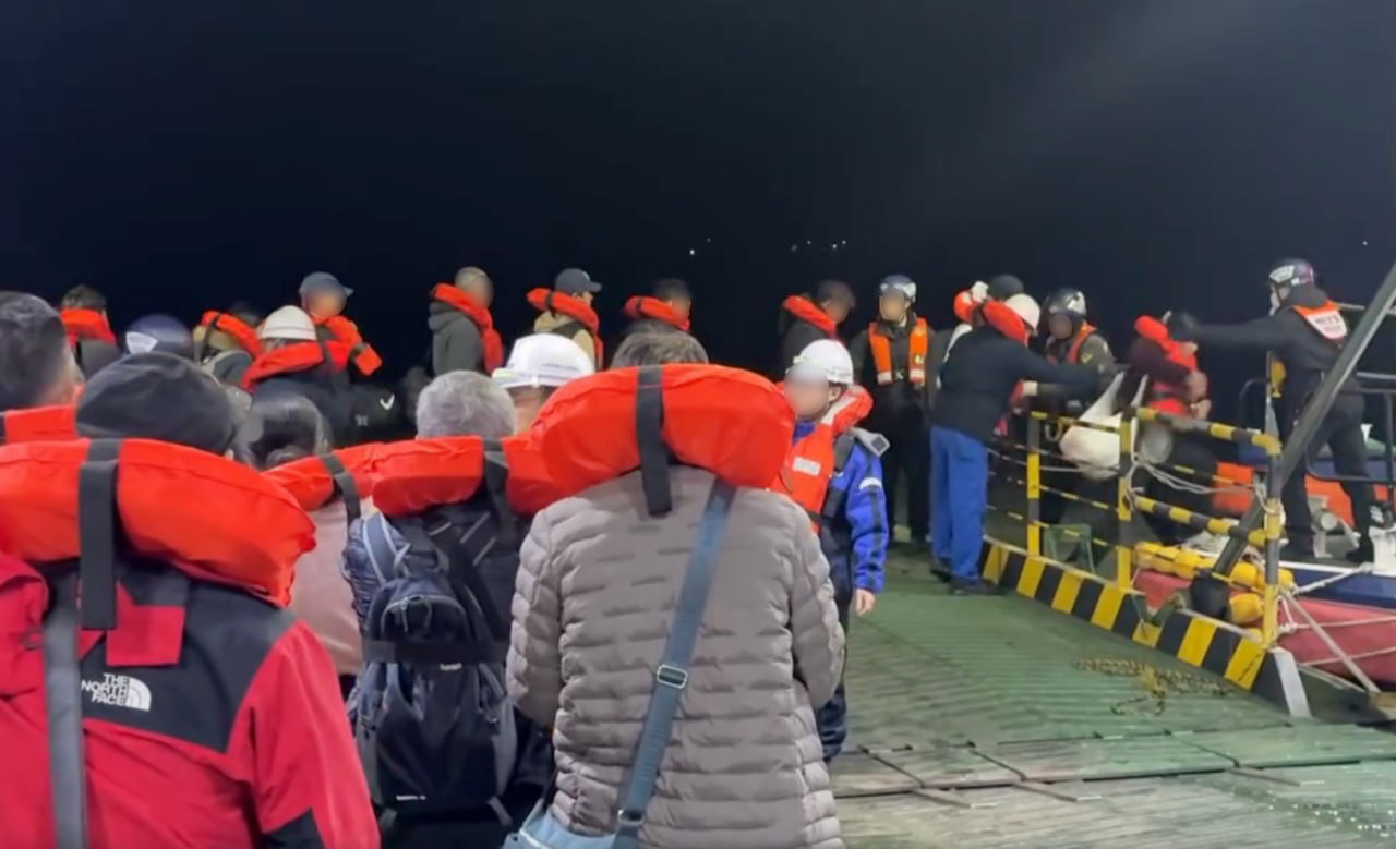 19일 오후 8시 16분쯤 전남 신안군 장산면 족도에 260여명이 탑승한 여객선이 좌초된 후 구조된 탑승객들이 육지로 이동하고 있다. 2025.11.19 뉴스1‘선박이 좌초됐다’는 방송이 나온 건 사고 20여 분 후였다고 한다. 이후 10분 뒤 ‘구명조끼를 입으라’는 방송이 나온 것으로 알려졌다.다만 오후 10시경 해경이 승선한 이후엔 다소 상황이 수습돼 질서 있는 탈출이 이뤄졌다. 익명을 요구한 한 승객에 따르면 해경이 도착한 직후 작은 배로 노약자와 어린이 먼저 10명씩 나눠 탑승했다. 구조선에 탑승하는 과정에서 승객들이 질서정연하게 줄을 서서 대기하기도 했다. 감정이 격해진 일부 승객들이 해경 및 선원들과 다투기도 했지만 큰 싸움으로 번지지는 않았다.