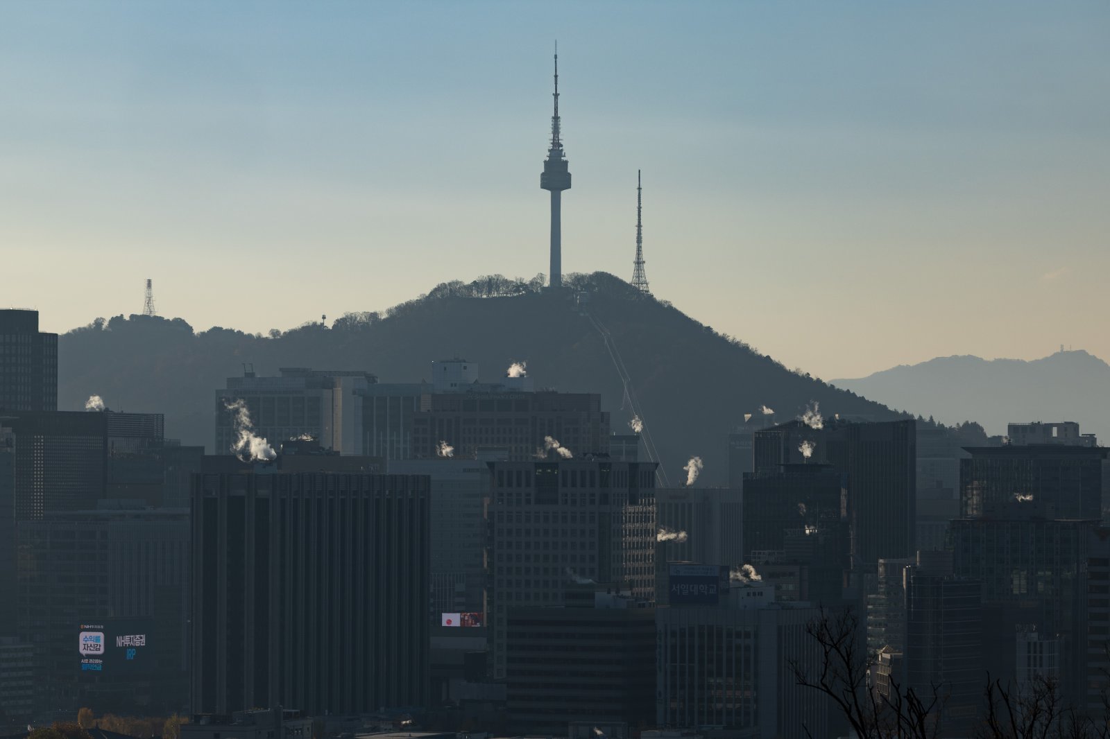북쪽에서 유입된 찬 공기 영향으로 아침 기온이 전날보다 5~10도 가량 큰 폭으로 떨어진 18일 오전 서울 시내 빌딩에 난방으로 인한 수증기가 피어오르고 있다. 2025.11.18 뉴시스