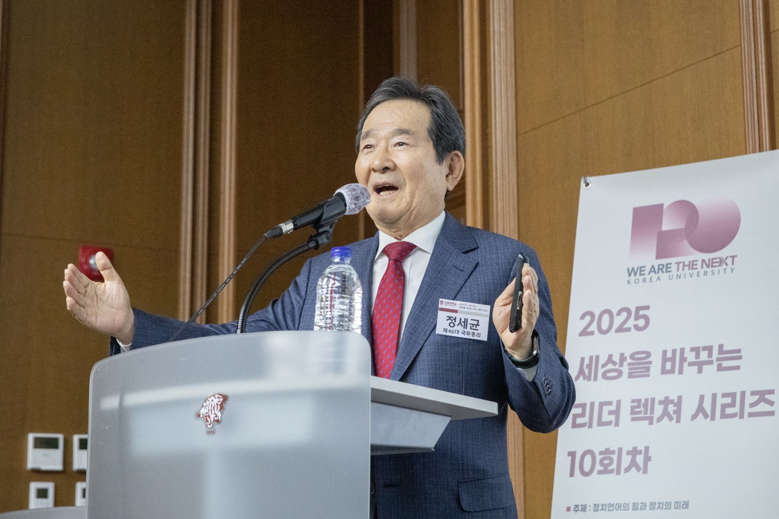 정 전 총리는 고려대가 개교 120주년을 맞아 지난 20일 개최한 ‘세상을 바꾸는 리더’ 렉처 시리즈 10번째 프로그램에 초청돼 ‘정치 언어의 힘과 정치의 미래’를 주제로 특강을 진행했다.