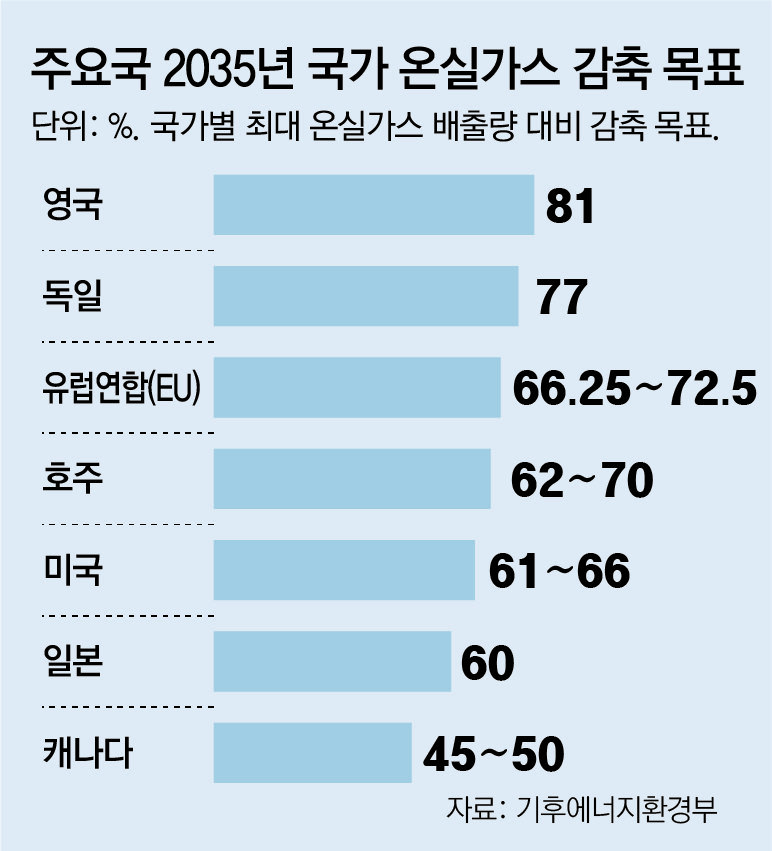 한국 정부는 22일(현지 시간) 브라질 벨렝에서 폐막한 제30차 유엔기후변화협약 당사국총회(COP30)에서 2035년까지 한국의 온실가스 배출량을 2018년 대비 53∼61% 감축하겠다고 발표했다.