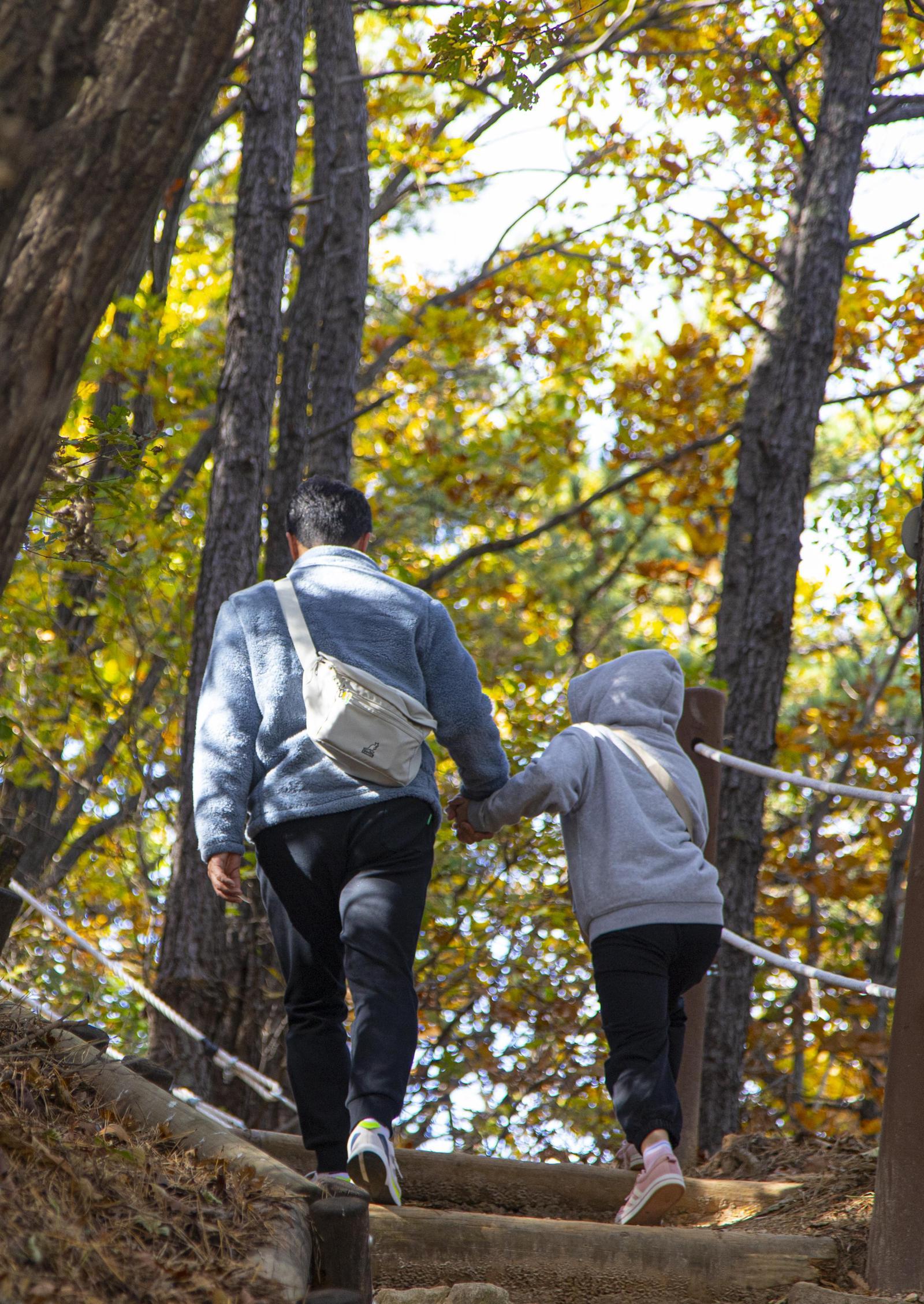 경기 광명시 구름산 산림욕장에서 한 가족이 숲길을 걷고 있다. 이곳은 둘레길과 숲속 놀이터, 휴식 공간을 갖춘 도심형 산림휴양 공간으로 가족 나들이객의 발길이 이어지고 있다. 경기관광공사 제공