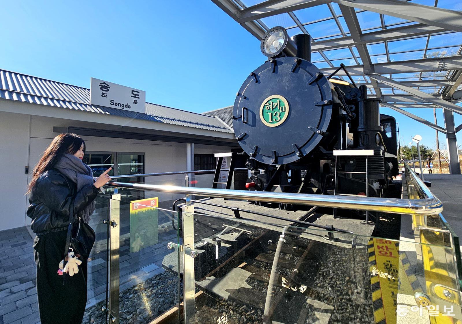 5일 한 시민이 인천 연수구 수인선 옛 송도역에 복원된 송도역공원을 둘러보고 있다. 새롭게 조성된 송도역공원에는 2023년 사업 부지 인근에서 발굴된 협궤철도 전차대(회전 설비), 증기 시계탑 등이 전시됐다. 수인선은 1937년 일본이 쌀과 소금 등을 수탈하기 위해 건설했으며 수원∼인천(총연장 52km)을 운행하다 1995년 중단했다.