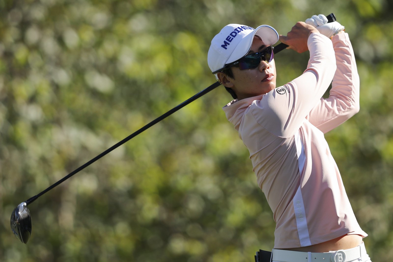 안나린이 20일(현지 시간) 미 캘리포니아주 로스앤젤레스의 엘 카바예로 컨트리클럽에서 열린 미국여자프로골프(LPGA) 투어 JM 이글 LA 챔피언십 최종 라운드 3번 홀에서 티샷하고 있다. 안나린은 최종 합계 8언더파 280타 공동 52위를 기록했다. 2025.04.21 로스앤젤레스=AP 뉴시스