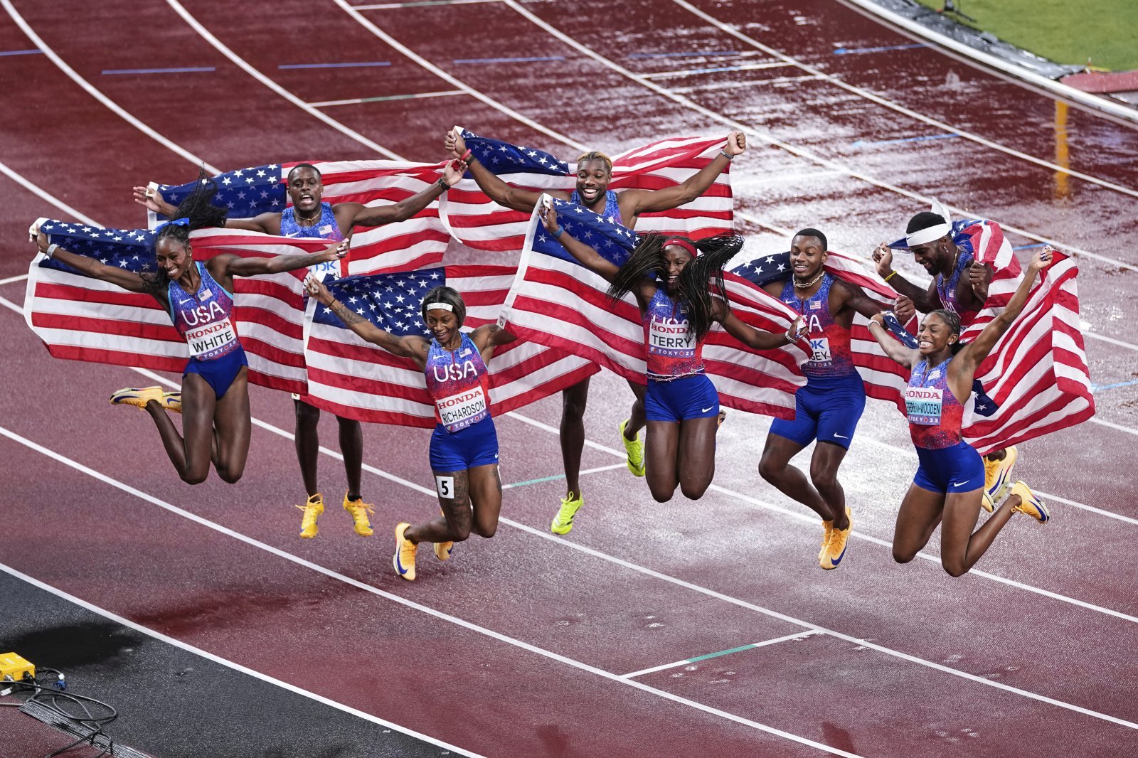 제퍼슨 함께한 미국, 여자 400m 계주 金. 2025.09.21 도쿄=AP 뉴시스