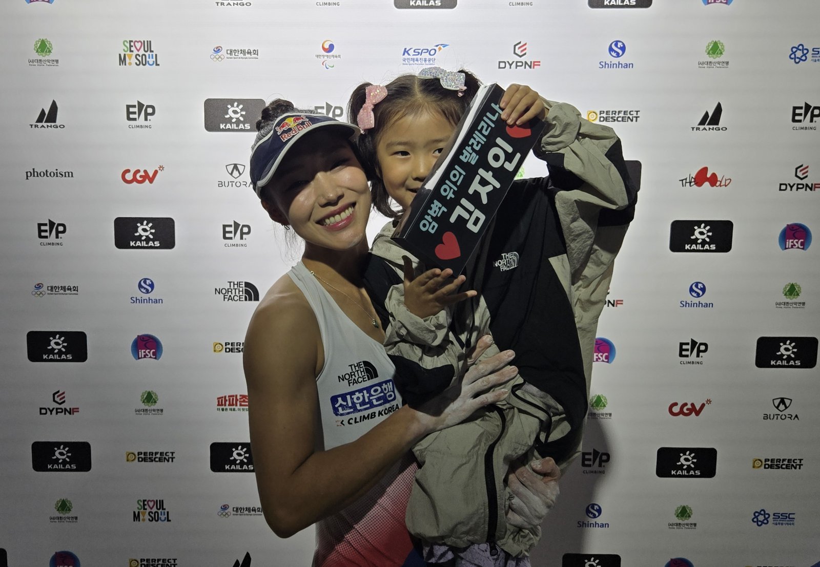 경기 종료 후 오 양을 꼭 안아준 김자인은 “등반하고 항상 만족할 수는 없겠지만, 딸 얼굴을 보자마자 아쉬움이 바로 잊힌 것 같다”며 미소를 지었다.