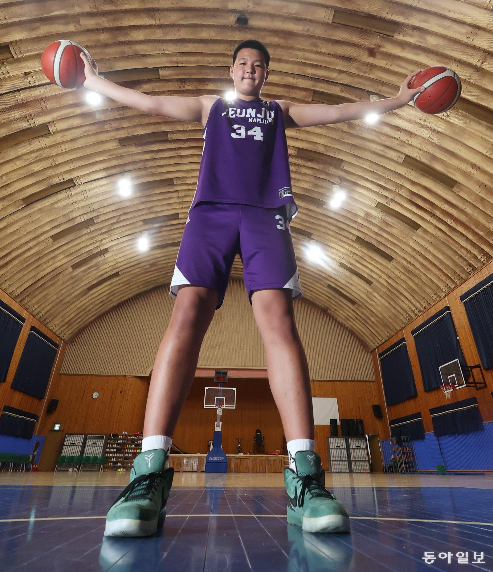 고현곤(14·전주남중)은 느티나무를 닮았다. 일단 크고 굵다. 아직 2차 성징도 오지 않았지만 키 198cm, 몸무게 115kg이다. 윙스팬(두 팔을 옆으로 벌렸을 때 양손 끝 사이 길이)은 204cm에 달하고 신발은 340mm를 신는다. 마을 어귀를 지키는 느티나무처럼 고현곤은 농구 골대 밑을 지킨다.