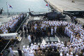 6일 박근혜 대통령이 UAE 자이드항에서 중동 지역으로 파견돼 있는 해군 청해부대 대조영함과 왕건함을 방문해 장병들을 격려했다. 박 대통령이 대조영함에서 한 여군과 포옹을 하고 있다. 동아일보DB