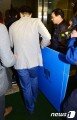 일명 ‘성완종 리스트’ 의혹을 수사하고 있는 검찰 특별수사팀 수사관들이 15일 오후 서울 동대문구 경남기업 본사를 압수수색해 압수품을 담을 박스를 가지고 본사에 들어서고 있다.뉴스1